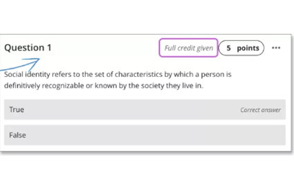 When you give full credit, you can’t change student scores for an individual question. You can override a student’s assessment score to adjust the points if needed.